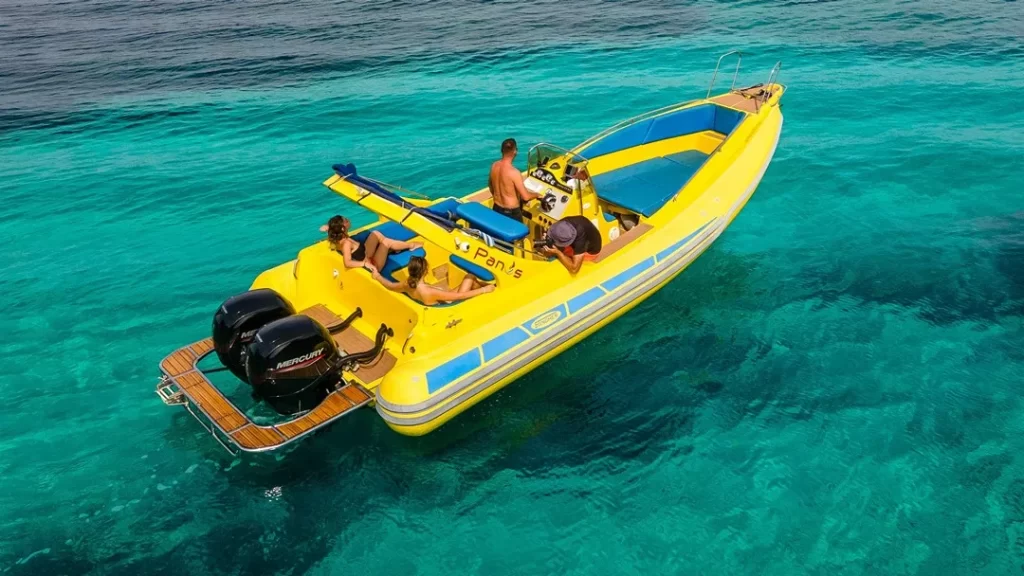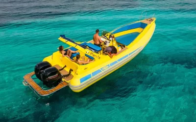 Written handling instructions for a safe cruise and basic medical information, video Tutorials (45 minutes), a lesson in the sea with an experienced boat operator to assure that you’ll have a safe trip, useful information about the Island (places to visit, mooring spots, etc), a recommended daily itinerary depending on the weather conditions, a map of the island with all points of interest, technical coverage and support in case of an emergency. We exclusively offer two rescue boats to provide essential backup and safety services and a high-quality GPS tracking system with an emergency alarm button. From our office, we monitor in real-time the precise location of every boat and can reach you immediately in case of an emergency.