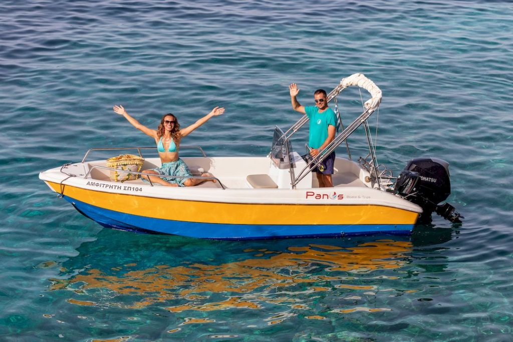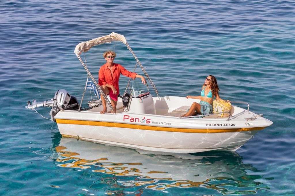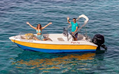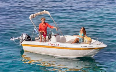 Carefully designed, with good sea handling, and pleasant and easy to drive, this boat is suitable to travel you around Paxos and Antipaxos in absolute comfort and safety. Small and compact, but with more than enough space for a group of friends or families with kids. This is the boat that will offer you memorable days in the sea and will help you explore our very own Paxos.