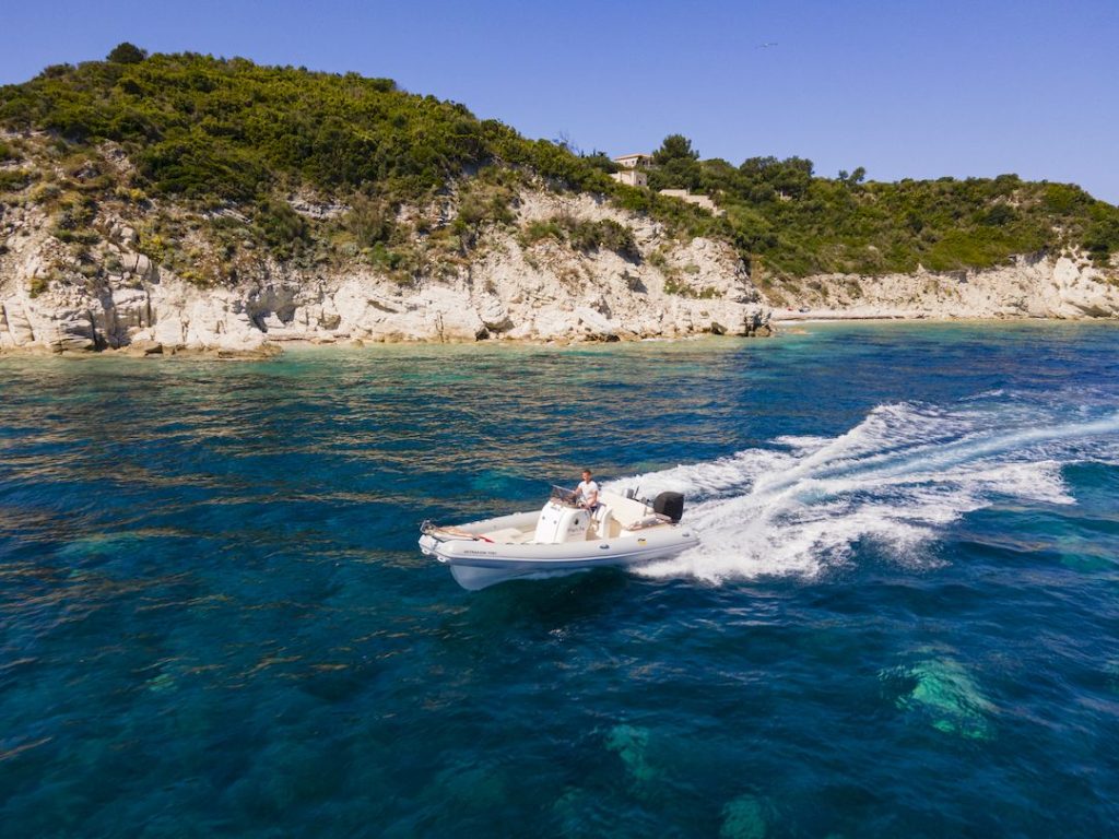 With an ergonomic cockpit and spacious living areas, our Colbac RIB will offer you the comfort you are looking for. Extraordinary performance combined with a stylish design and obvious elegance. The ideal boat for spending the whole day at the sea with the people you love. Get onboard and explore Paxos and Antipaxos in privacy and style.