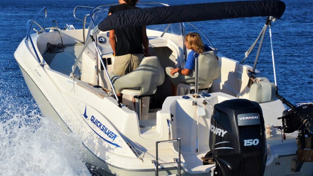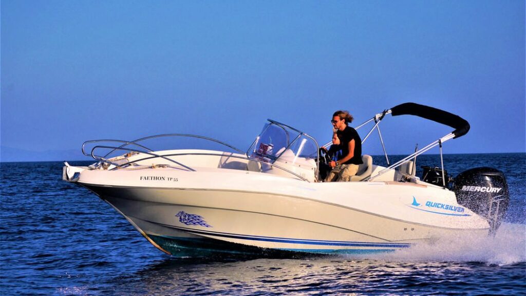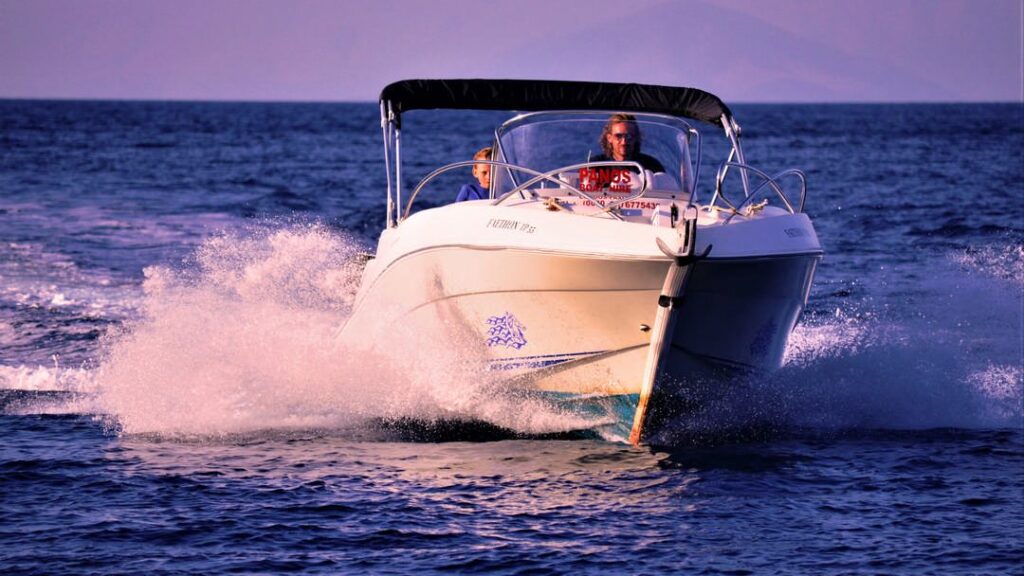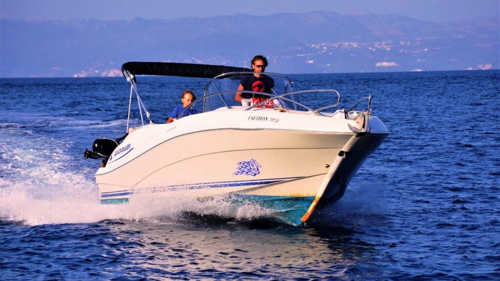 With a central driving console and rotating seats, combined with a small cabin to store all your equipment, this is the boat that offers you space and the comfort you need to enjoy a wonderful day in the sea and explore Paxos and Antipaxos in the most fascinating way.