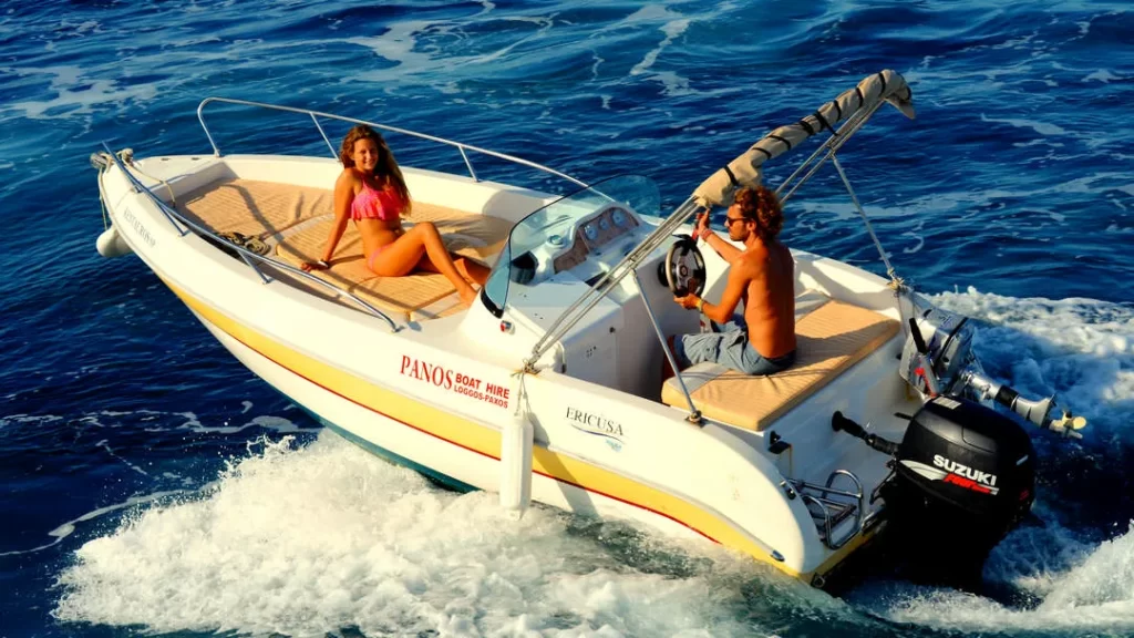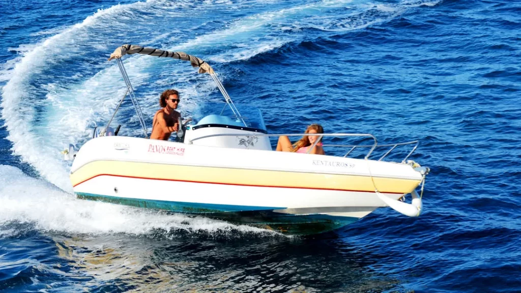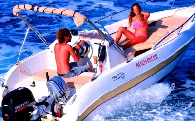 Written handling instructions for a safe cruise and basic medical information, video Tutorials (45 minutes), a lesson in the sea with an experienced boat operator to assure that you’ll have a safe trip, useful information about the Island (places to visit, mooring spots, etc), a recommended daily itinerary depending on the weather conditions, a map of the island with all points of interest, technical coverage and support in case of an emergency. We exclusively offer two rescue boats to provide essential backup and safety services and a high-quality GPS tracking system with an emergency alarm button. From our office, we monitor in real-time the precise location of every boat and can reach you immediately in case of an emergency.